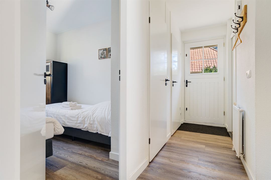 De woning beschikt over drie slaapkamers, waarvan twee op de begane grond. De grote slaapkamer is voorzien van een kingsize bed (180x200), de andere slaapkamer heeft twee losse eenpersoonsbedden (90x200) die ook samengevoegd kunnen worden tot een tweepersoonsbed. De derde slaapkamer bevindt zich op de tussenverdieping en heeft een hoogte van 1,60m. Hier staan ook twee losse eenpersoonsbedden (90x200), die desgewenst aan elkaar geschoven kunnen worden.
