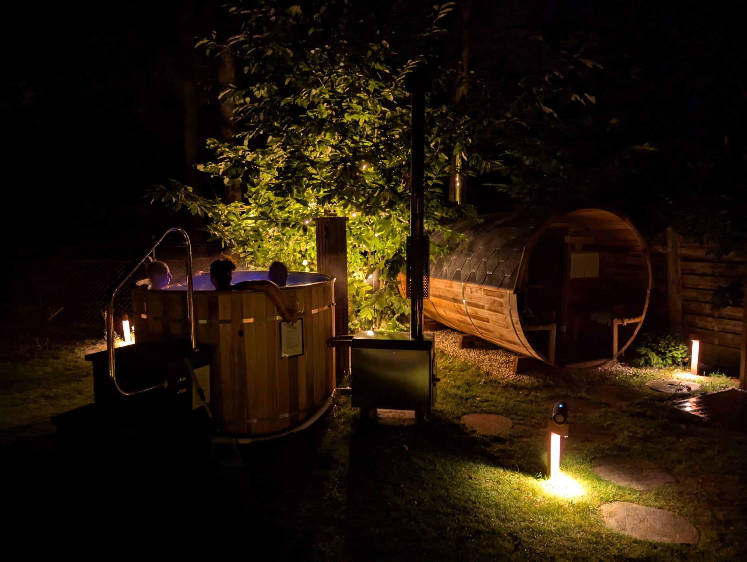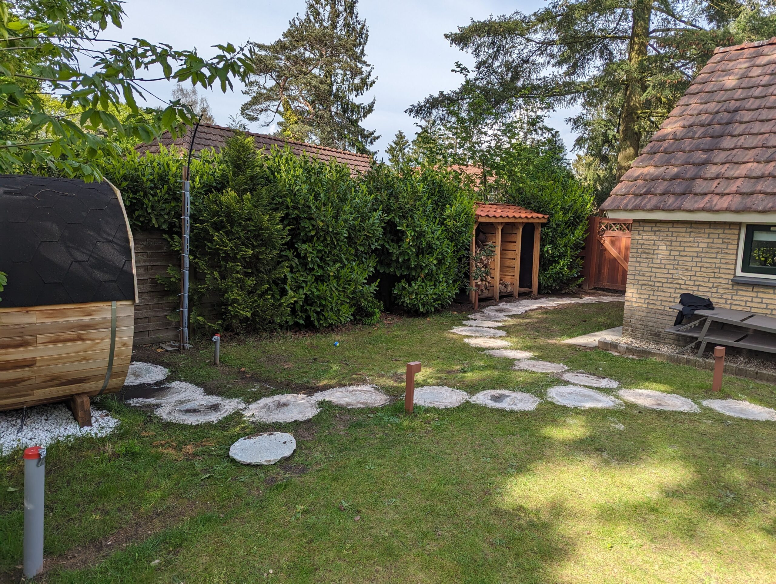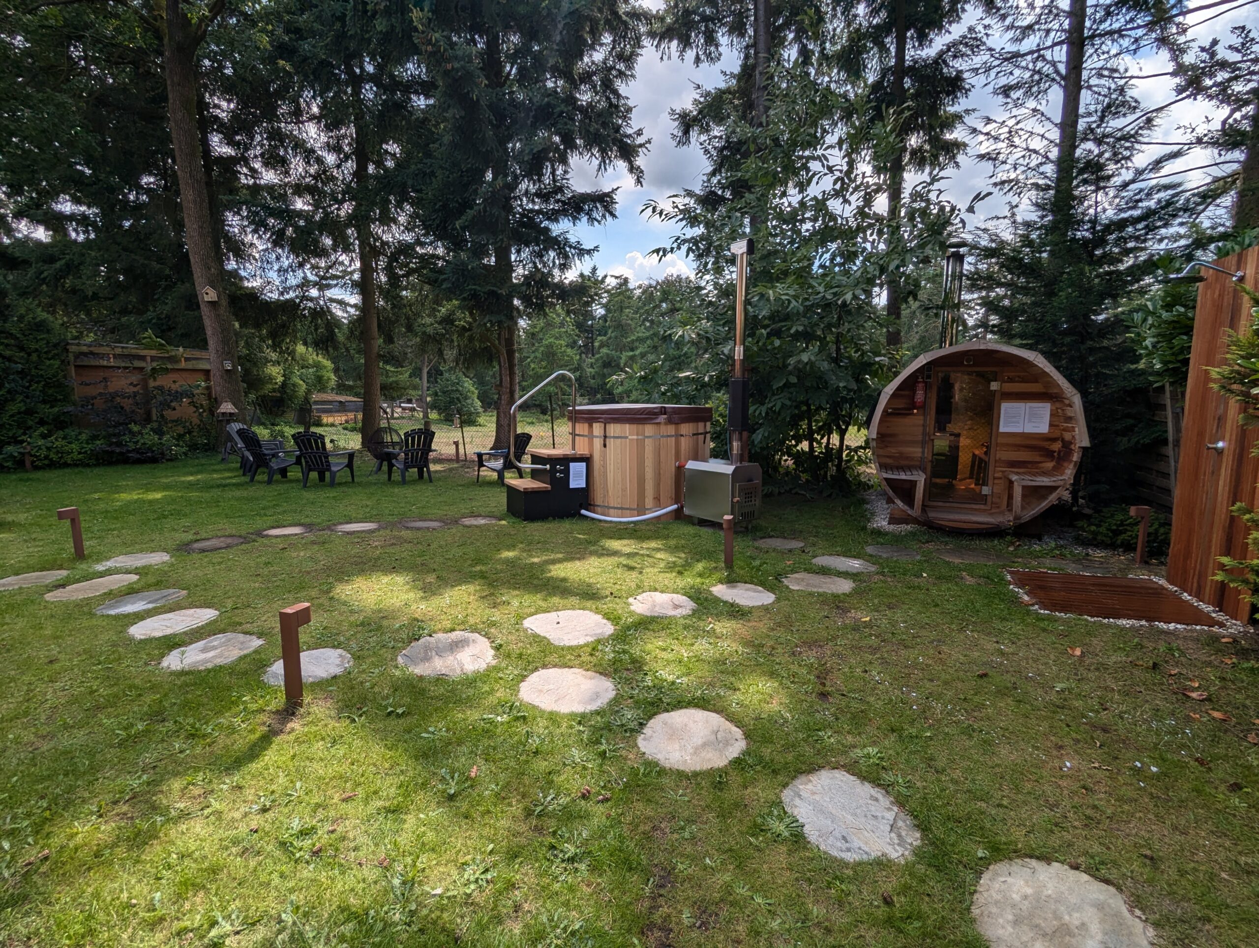 Alpaca's, sauna en “hottub” in de tuin: Ontspan in de zonnige tuin met uitzicht op grazende alpaca's. Geniet van debuitendouche, hout gestookte sauna en “hottub” geschikt voor 6 personen. Voor liefhebbers is er een Weber kolen barbecue aanwezig.